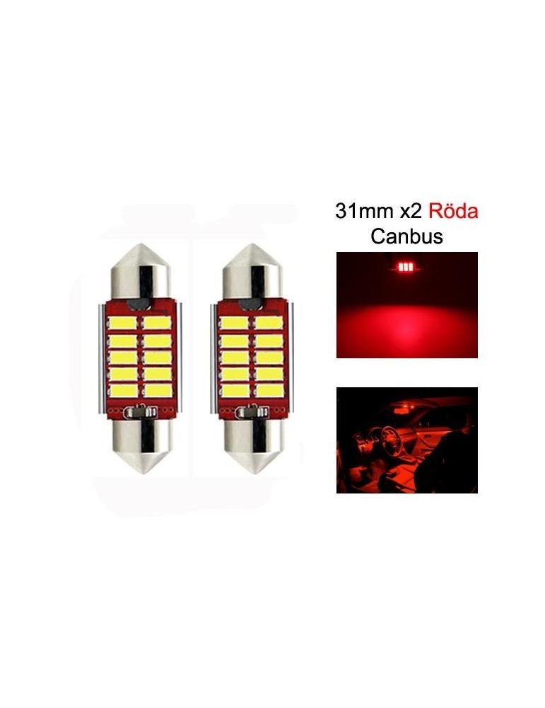 c5w canbus 31mm röd led SV8.5 2-pack 12v