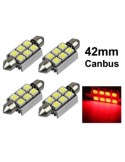 Spollampa 41mm 42mm röd Canbus Led 5050SMD 4-pack C5W SV8.5
