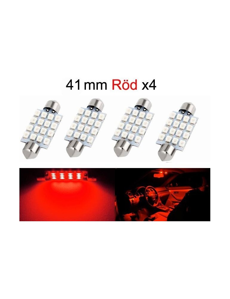 Diodlampa 41mm 42mm röd LED 2835SMD 4-pack C5W SV8.5