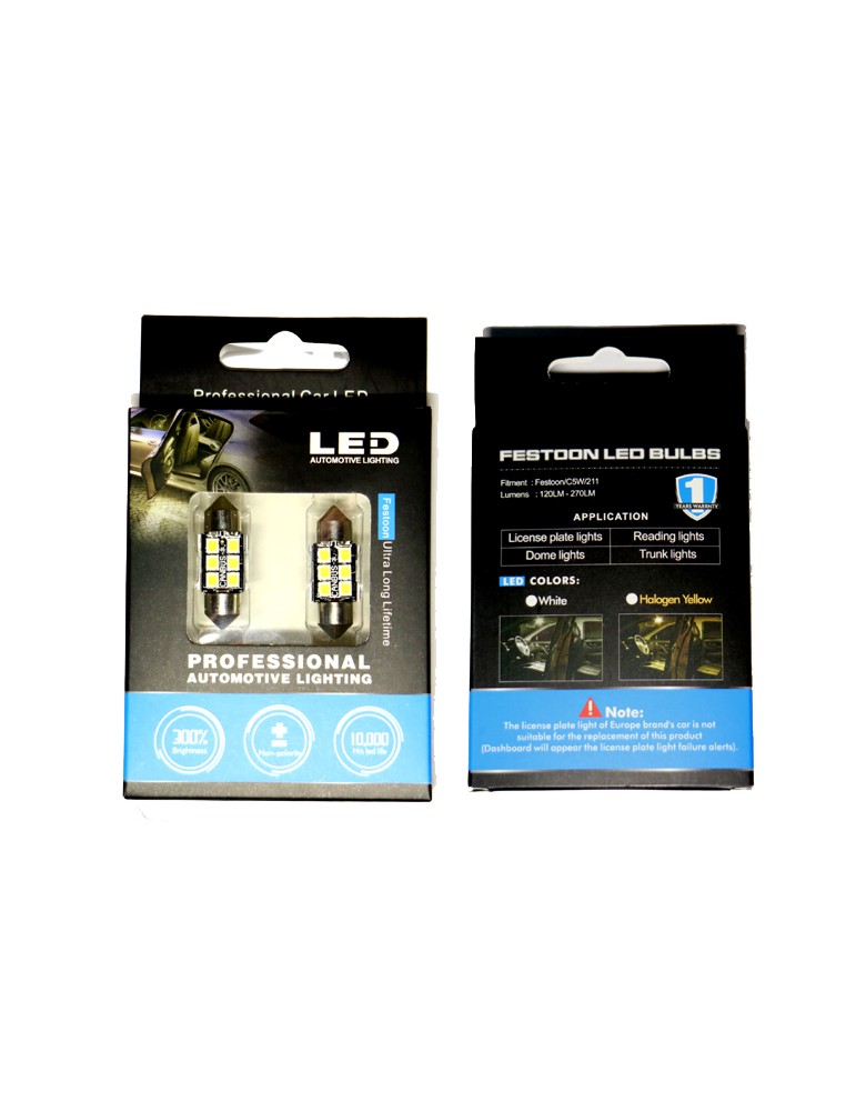 Canbus C5W 41mm 42mm diodlampa LED 6000K 2-pack 12 V Festoon