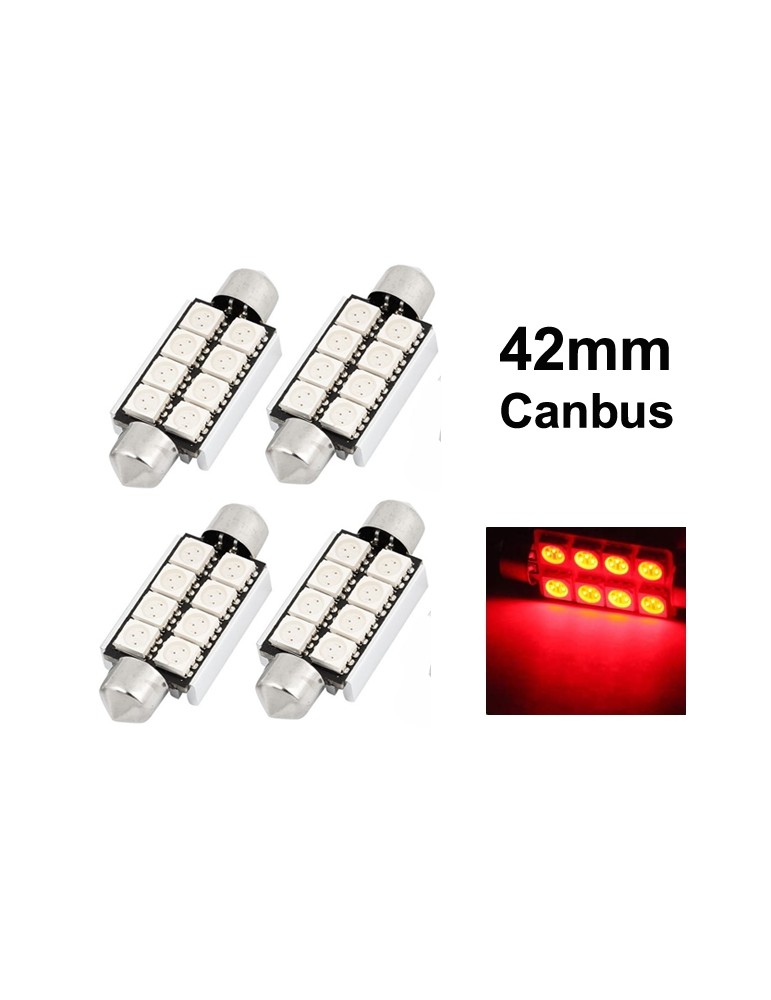 Diodlampa 41mm 42mm röd Canbus LED 5050 SMD 4-pack C5W SV8.5