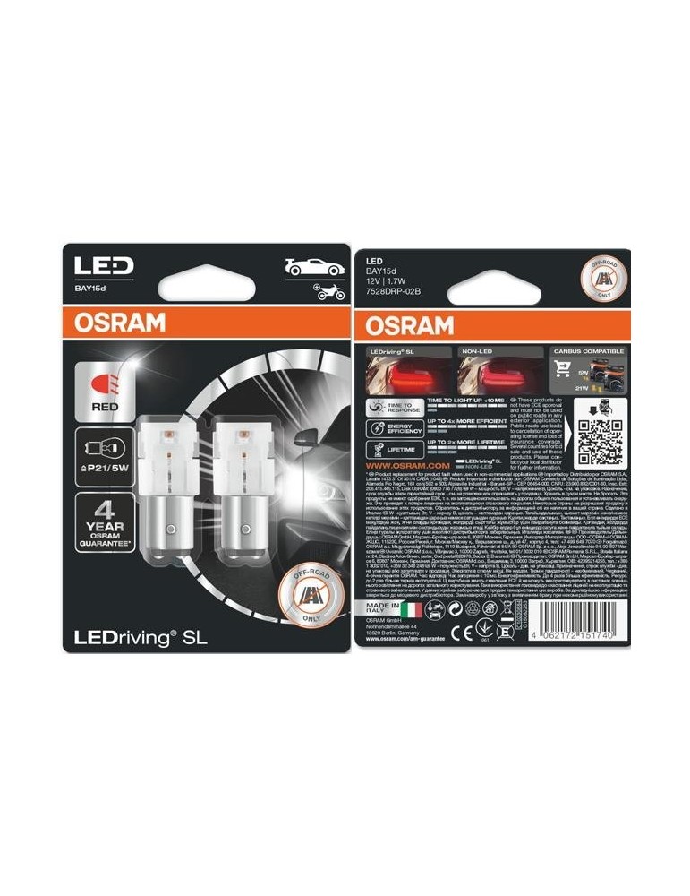 Osram röd p21/5w bay15d 1157 led lampor 12v premium led