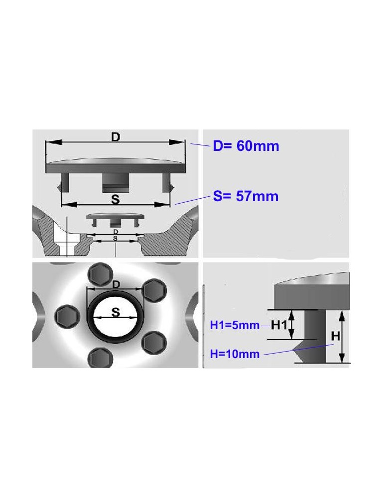 Centrumkåpor till fälgarna 60mm passar 57mm hål 4-pack