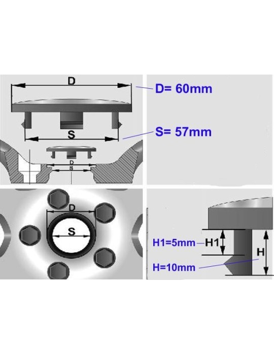 Total diameter 60mm (4 st) lätt kupolformade (för 57mm hål)
