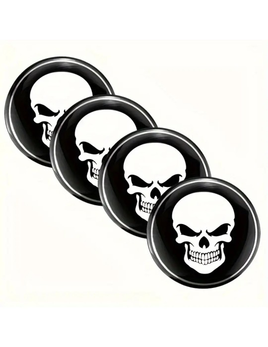 Dödskalle hjulnav emblem till fälgar och centrumkåpor 4-pack