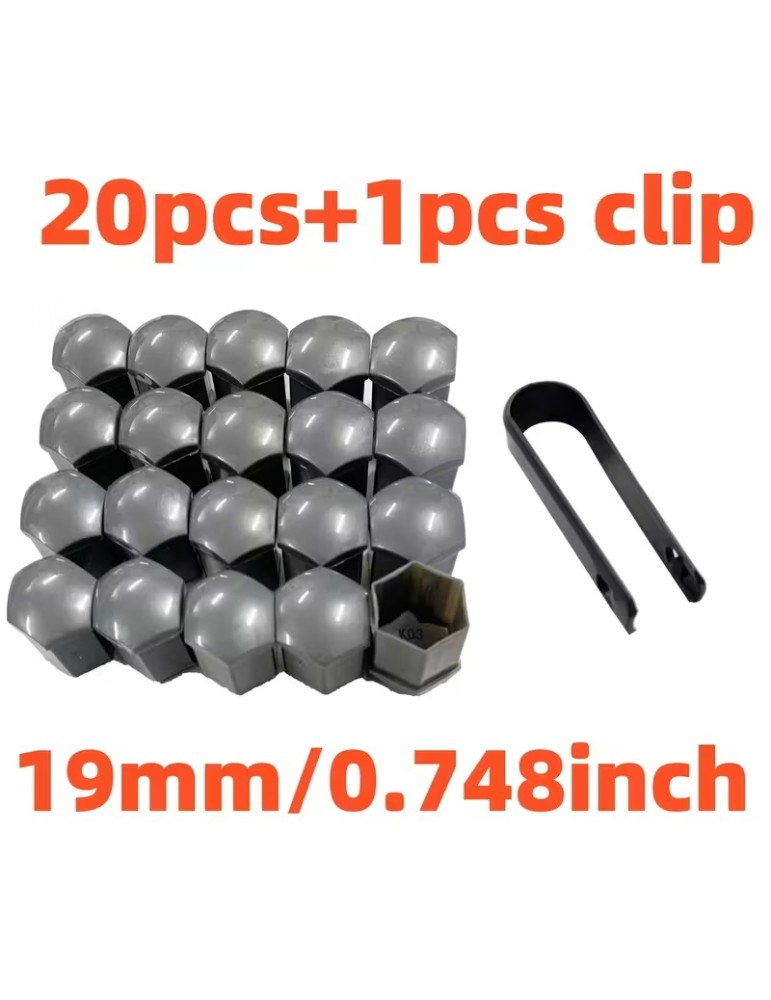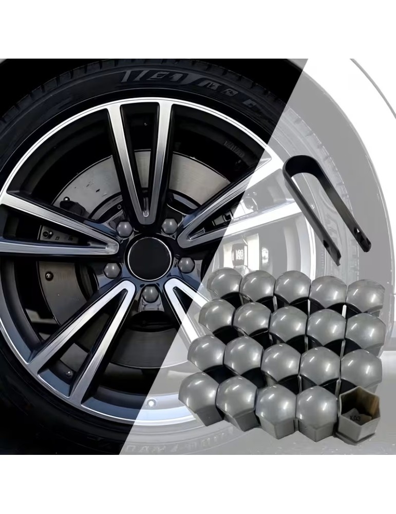 Hjulmutterkåpor 19mm Gråa / Hjulbultskåpor 20-pack + monteringsverktyg