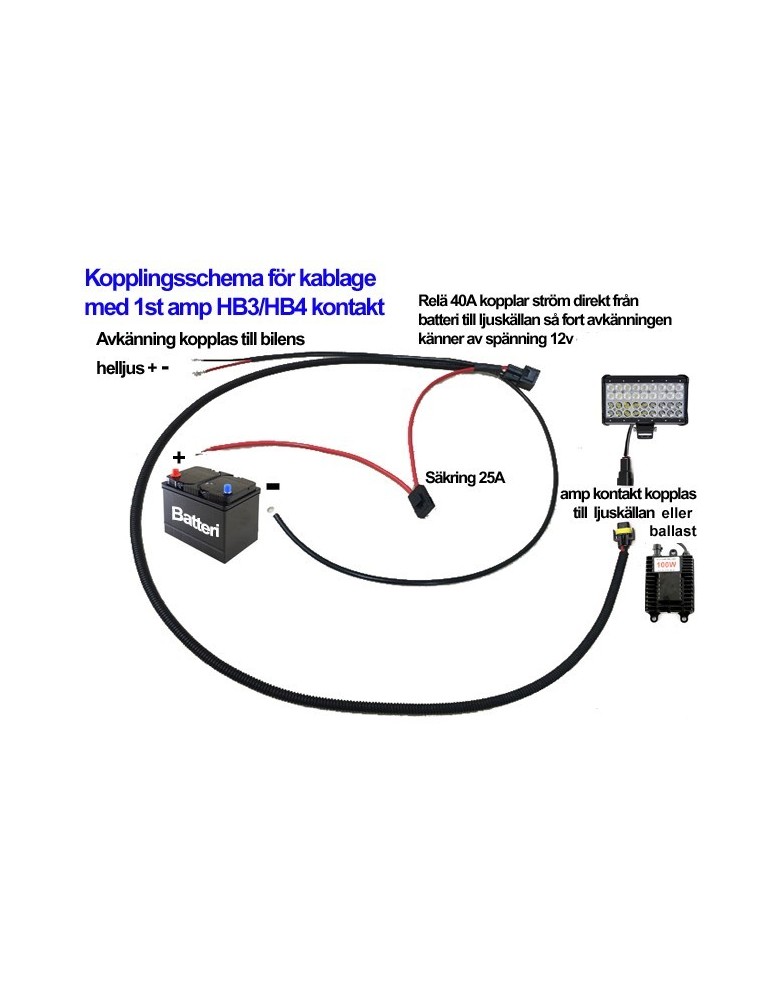 Kabelsats 40A reläkabel strömkabel Xenon / ledramp / arbetsljus