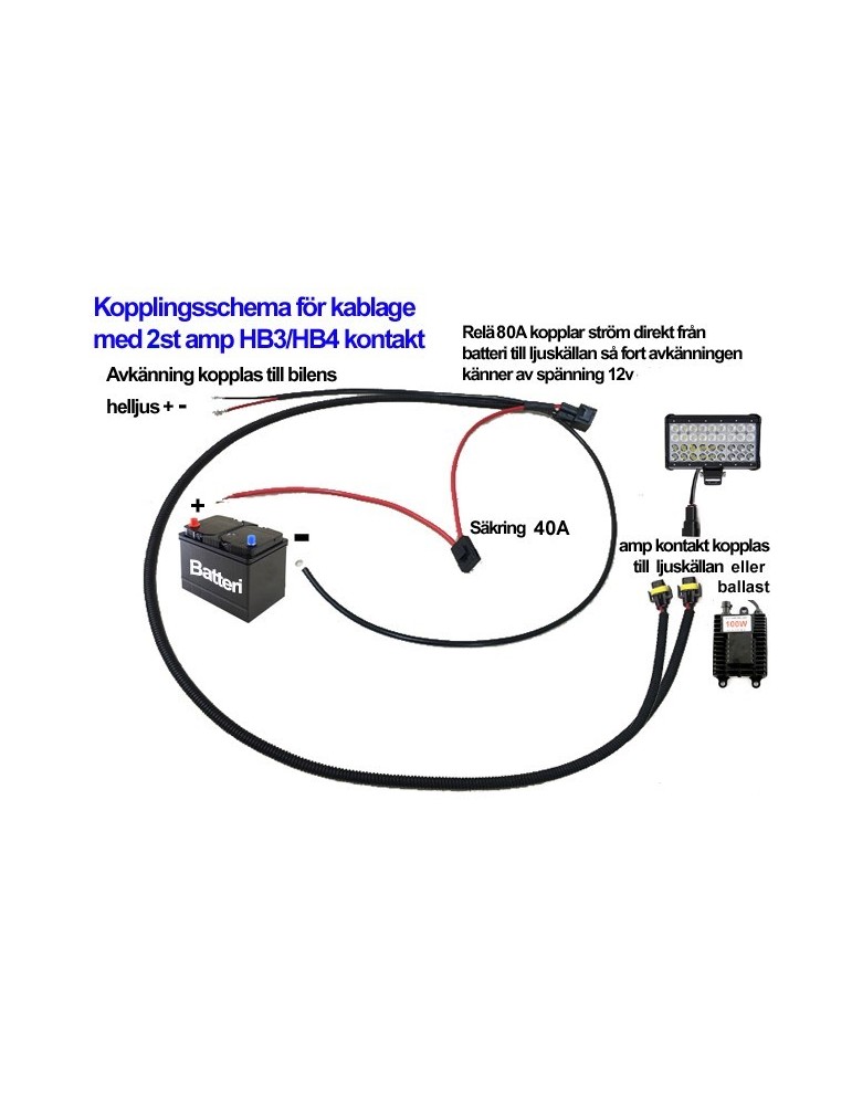 Inkoppling av 2st Xenonballast eller arbetsljus / ledramp blir enkel med denna kabelsats samt