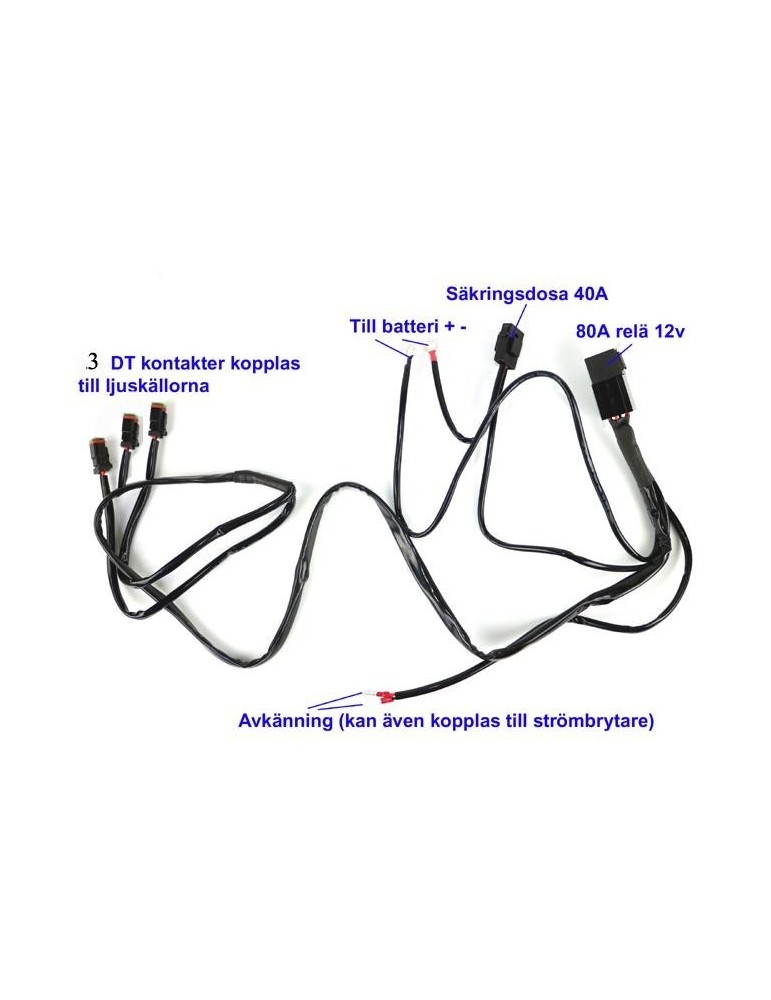 Kabelsats 80A reläkabel strömkabel arbetsljus ledramp 3x DT