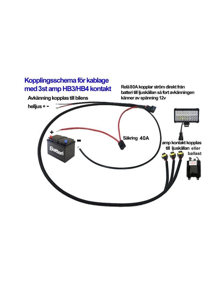 Inkoppling av 3st Xenonballast eller arbetsljus / led ramp blir enkel med denna kabelsats samt