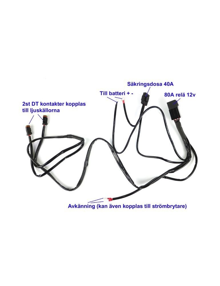 Kabelsats 80A reläkabel strömkabel arbetsljus ledramp 2x DT