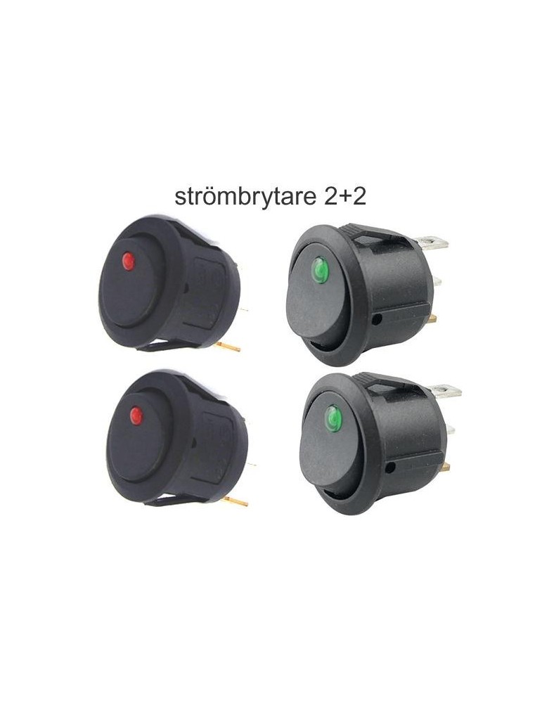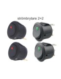 4st Strömbrytare / vaggströmställare rund svart/grön/röd med lyse vid påslag