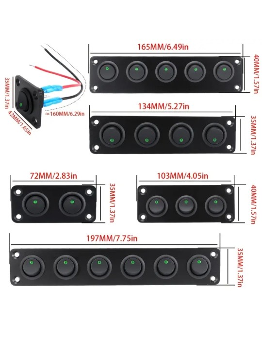 Panel med Strömbrytare 12v 20A avbrytare vaggströmställare 4-pack strömbrytare