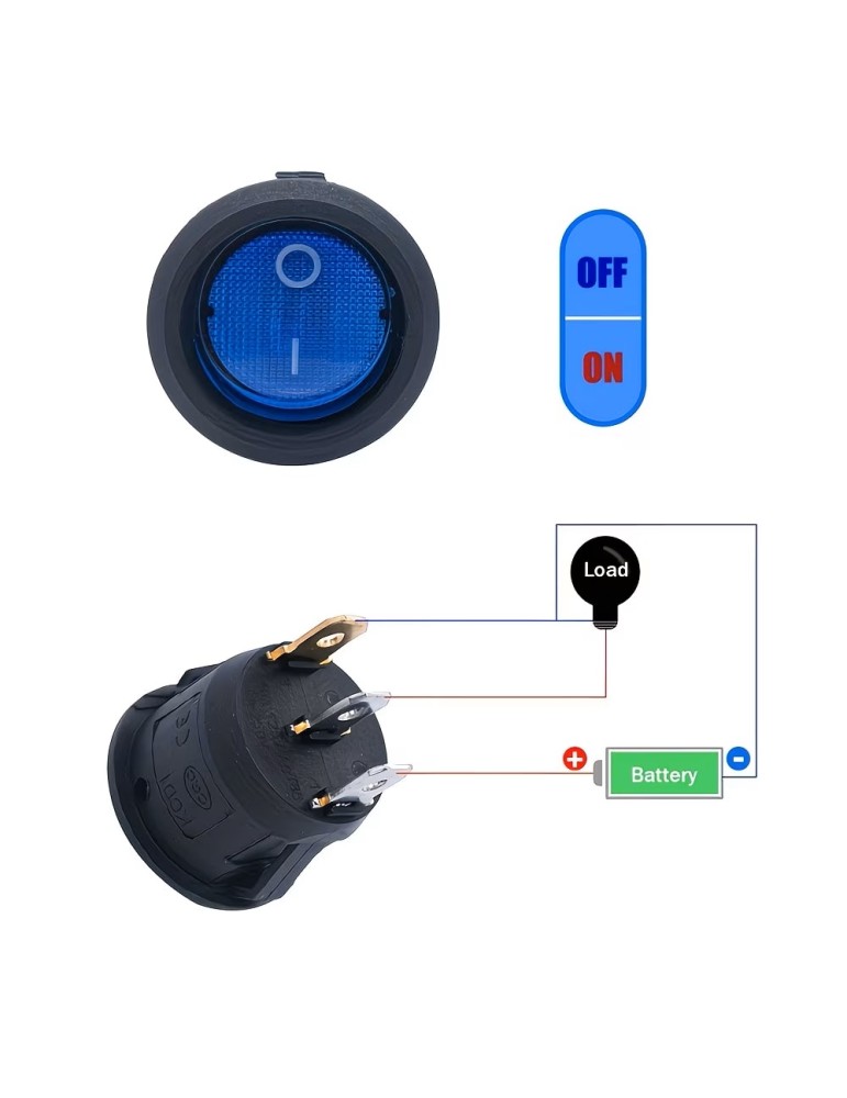 4st Strömbrytare / vaggströmställare rund med lyse för 12v DC