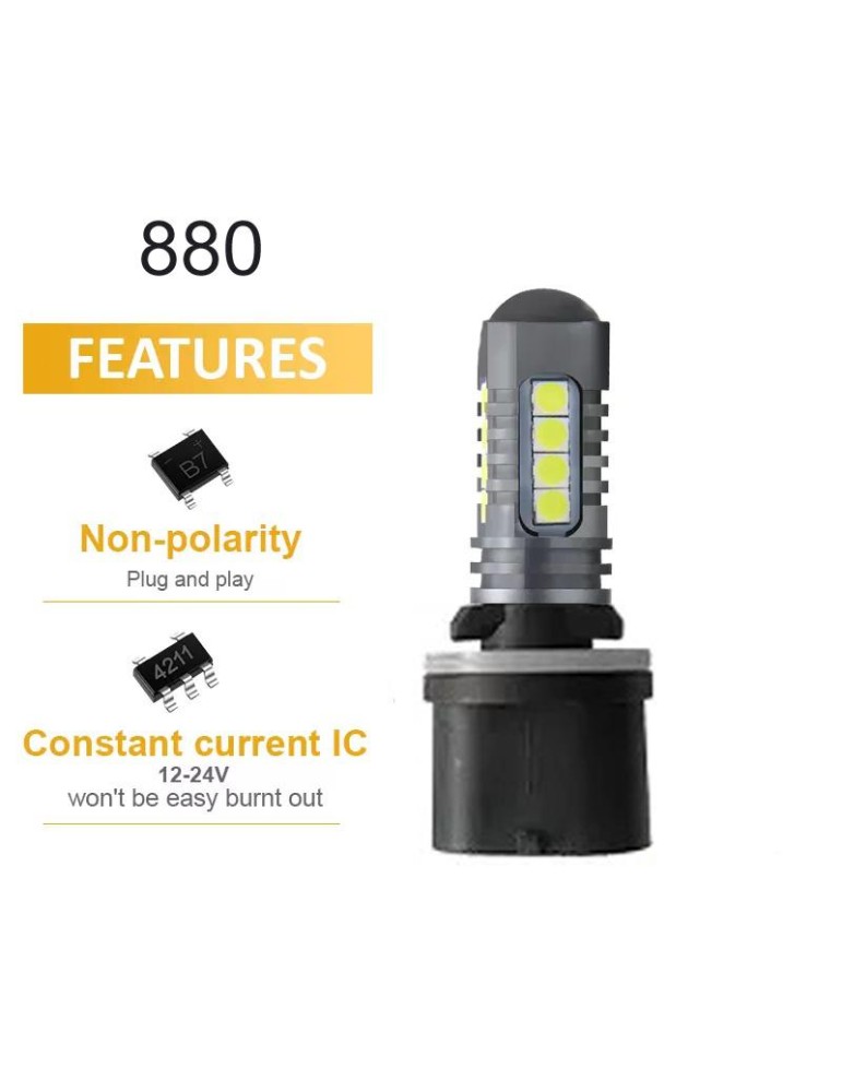 880 H27 Dimljus 500 lumen led 6000K m. 18st 3030smd chip 2-pack