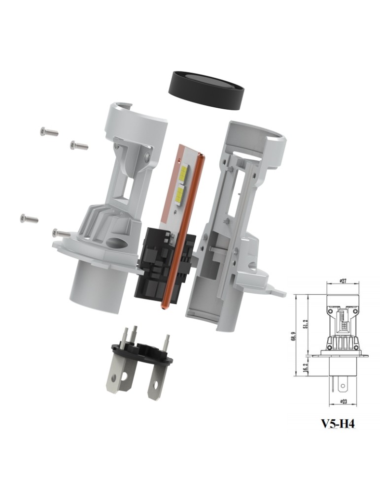 V5 H4 Premium Led kit till hel/halvljus med inbyggd fläkt på toppen för mer lumen