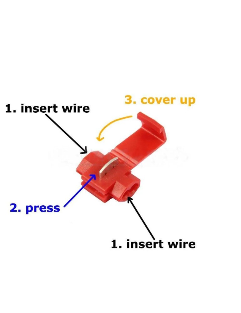 Parallellkopplas mellan (+) och (-). Behöver ej lödas ,röda skarvklämmor medföljer 2st.