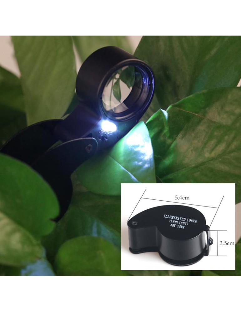 Lupp 40x25mm förstorningsglas med stark ledlampa inkl. batterier