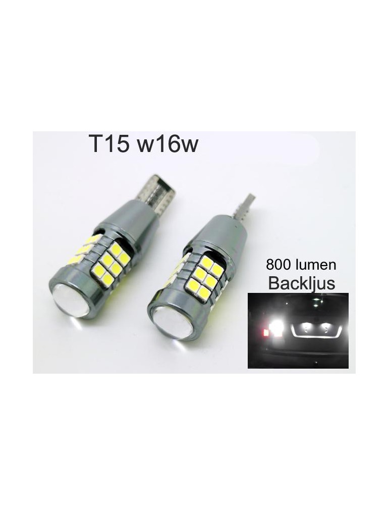 T15 W16W 921 912 906 backljus, Led 800 lumen, 27x chip 6000K, 2st