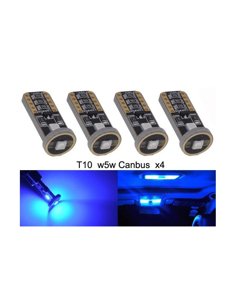 T10 w5w blå LED-lampor, Canbus med 3 st 3030SMD chip, 4-pack.
