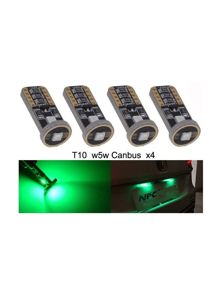 T10 w5w grön LED-lampor, Canbus med 3 st 3030SMD chip, 4-pack.
