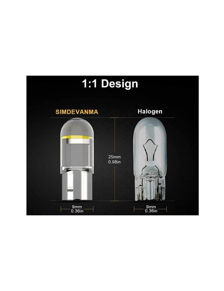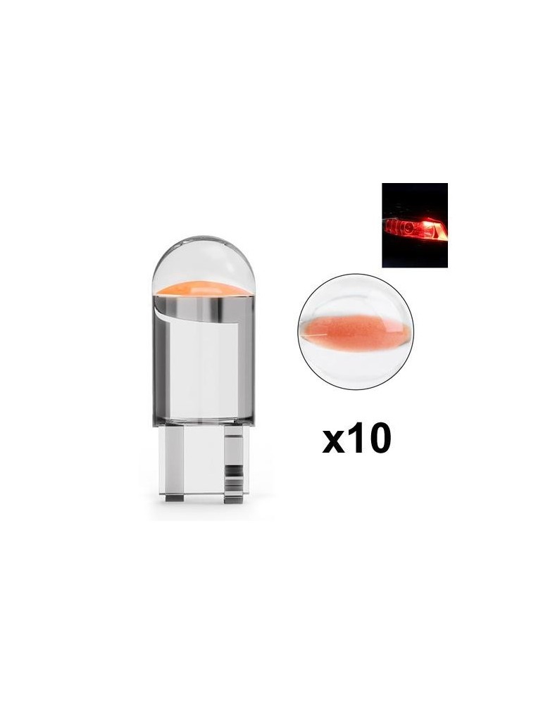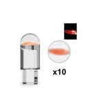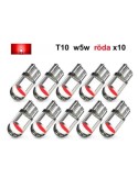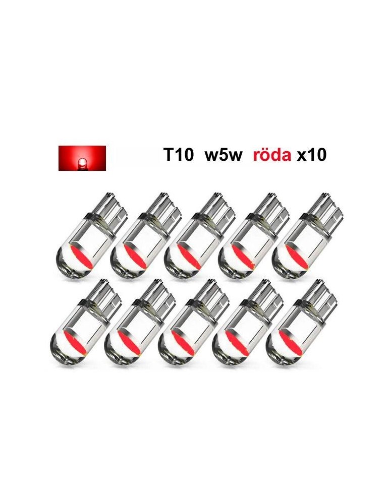 T10 w5w röda LED-lampor med 1st COB-chip, 12V, 10-pack.