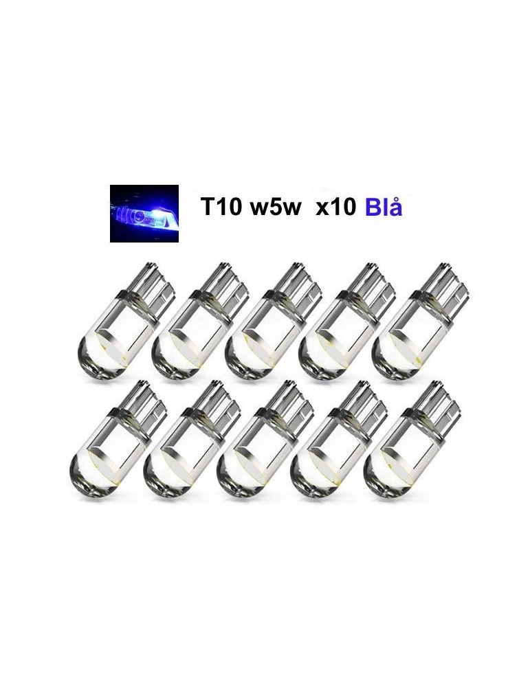 T10 w5w blå LED-lampor med 1 st COB LED-chip, 12V DC, 10-pack.
