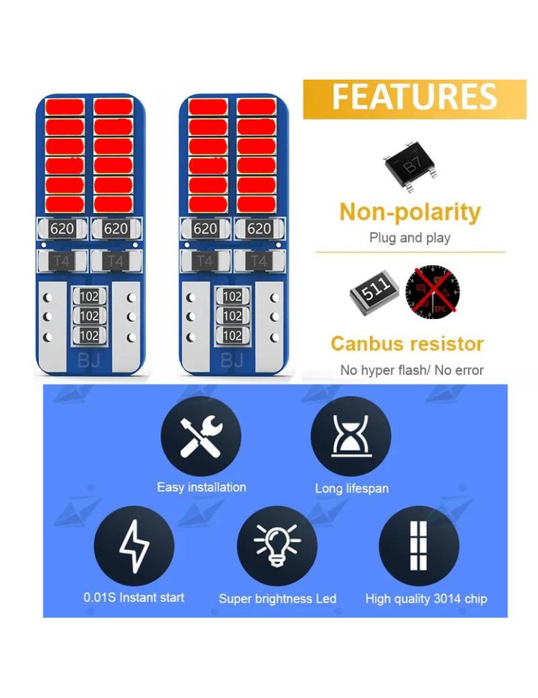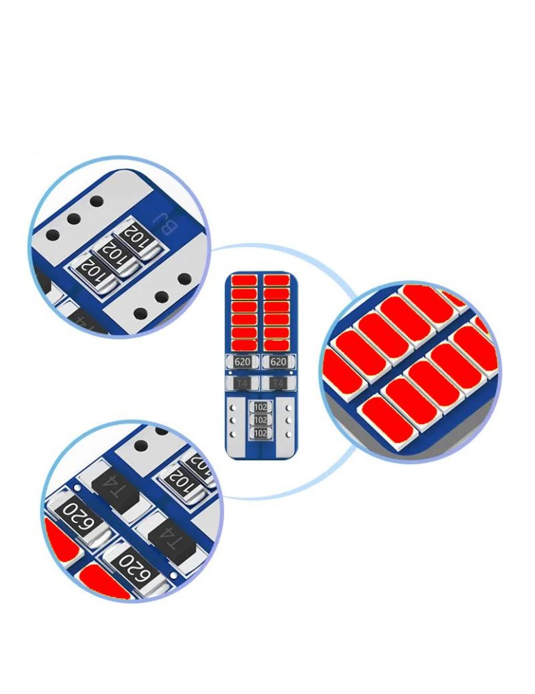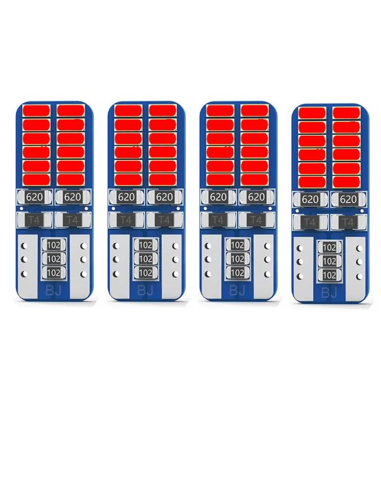T10 w5w Canbus, Röd, 4-pack, LED-lampor med 24 st 3014smd chip.