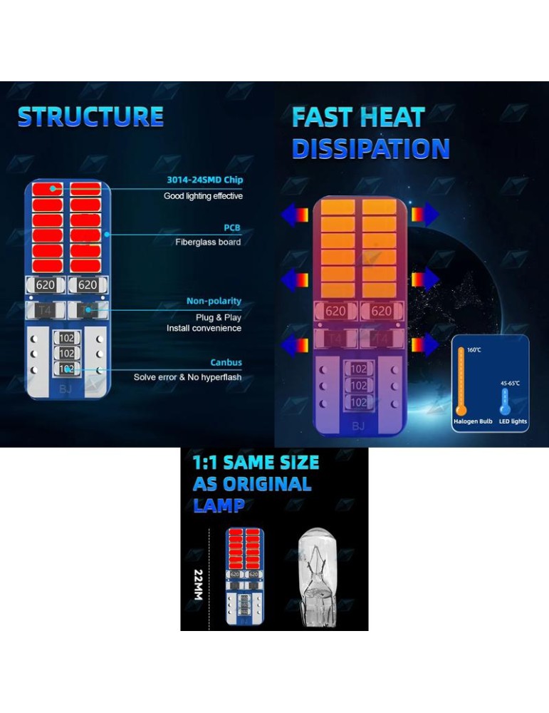 4 st Canbus T10 w5w LED-lampor.