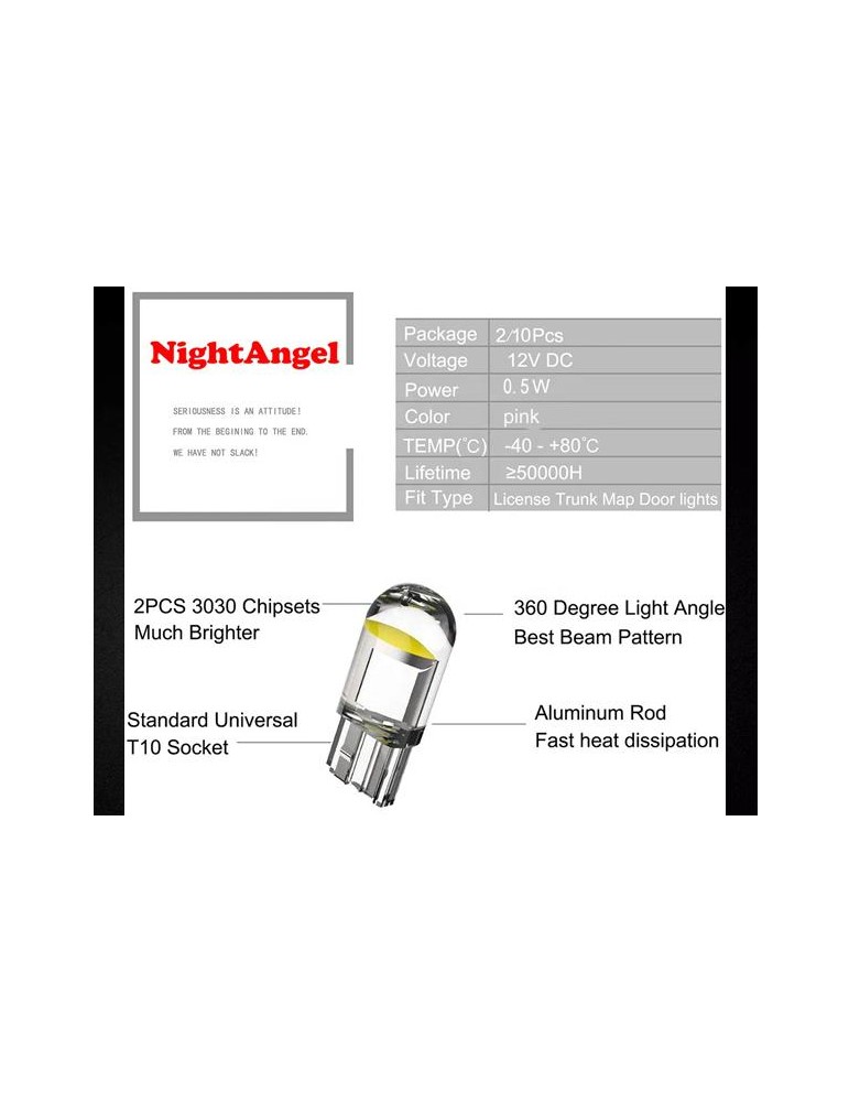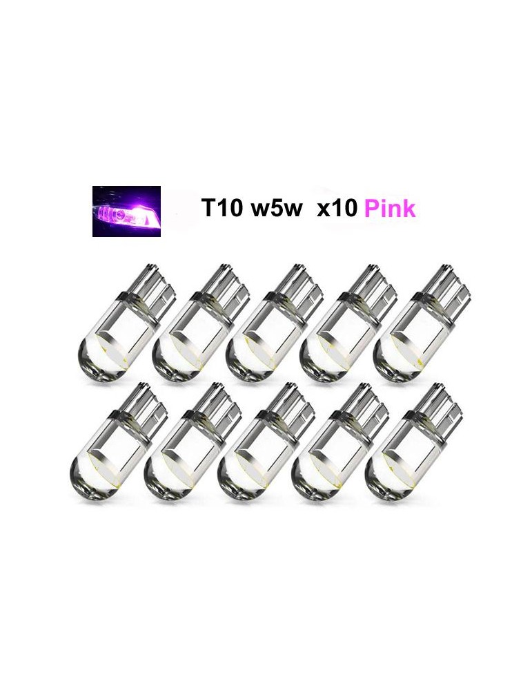 T10 w5w pink LED-lampor med 1 st COB LED-chip 12V DC, 10-pack.