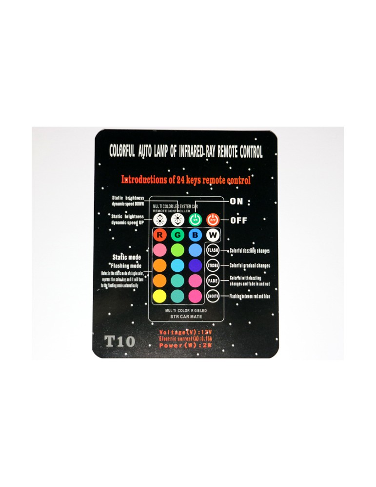 T10 w5w RBG med fjärrkontroll. LED-lampor, 2-pack, 12V DC, pimp styling.