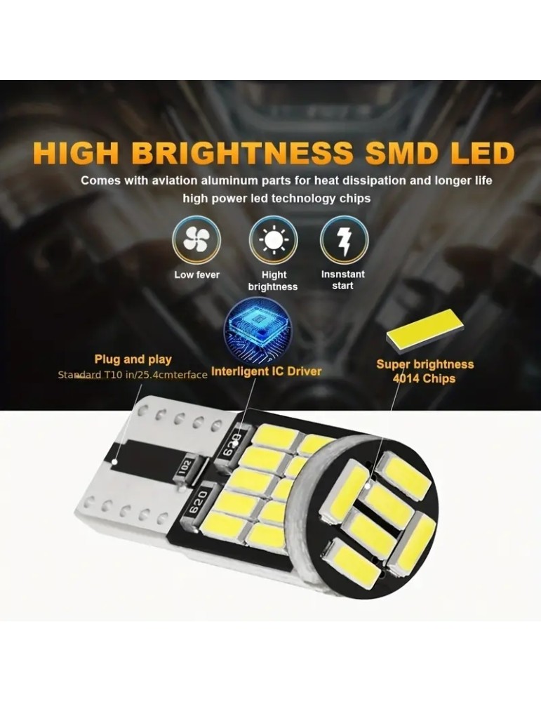 T10 w5w Canbus Vita 6000k 10-pack LED-lampor 12V