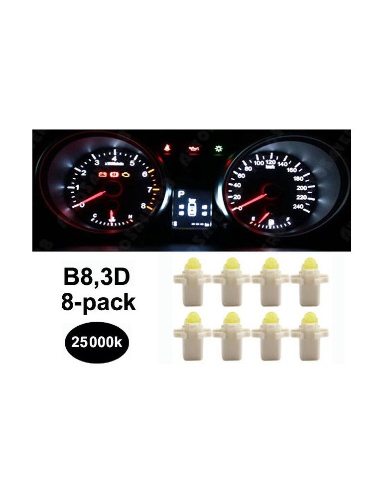 B8,3D vita Ledlampor med 1st COB ledchip 8-pack instrumentlampa