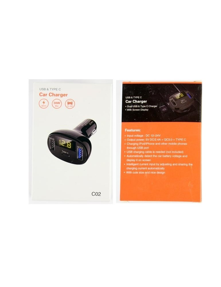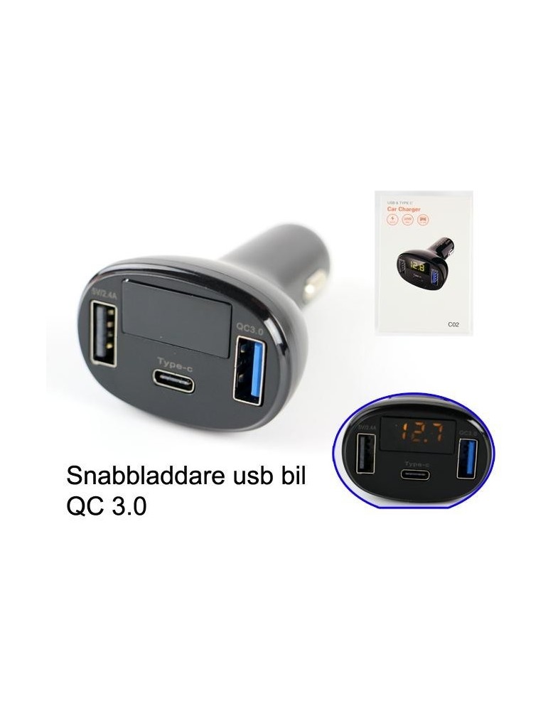 Uttag 3st / snabbladdning 3,0QC + vanligt 2.4A + Type-C .