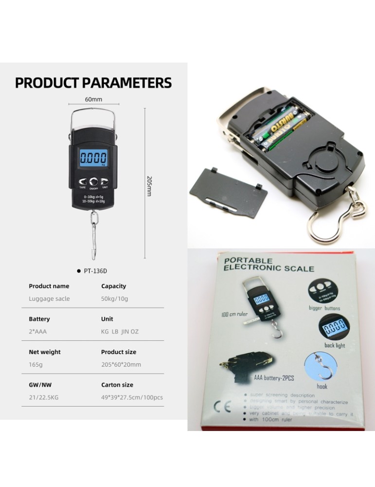 Digital våg 0 - 50kg fiskevåg med måttband även för tex bagage