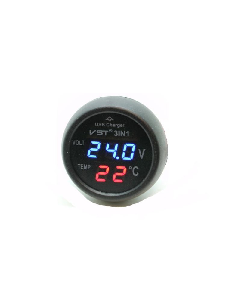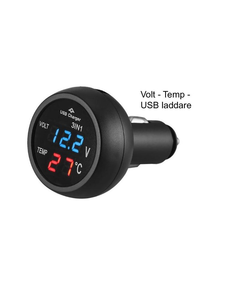 Voltmätare Temp + USB 5v laddare 4-30v DC bil båt husbil husvagn